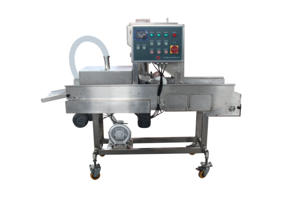 上屑機與上漿機配合使用,裹面包屑機可單獨使用。上面包屑機適合于中等以上干面包糠顆粒,全自動裹康機對市場上流行的漢堡肉餅、麥樂雞塊、魚香漢堡肉餅、土豆餅、南瓜餅、肉串等產(chǎn)品進行上面包屑處理,是快餐店、配送中心、食品工廠理想的上面包屑設(shè)備。